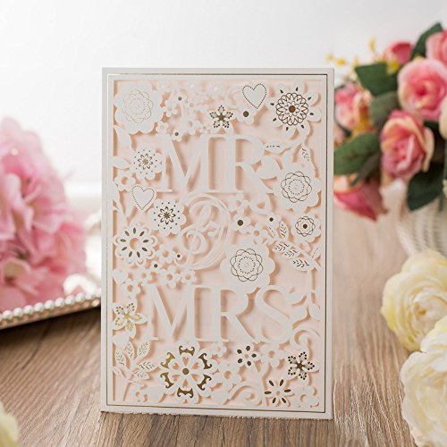 Paper Laser Cut Bronzing Wedding Baby Shower Invitations Cards with Flower Hollow Favors Invitation Cardstock for Engagement Birthday Graduation