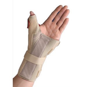 Studio : Swede-O Braces Publisher : Swede-O Braces Binding : Health and Beauty Product Description Thermoskin Wrist Brace-Thumb Spica Only Thermoskin offers natural heat therapy and support for injury and pain with Trioxon perspiration control for long term comfort. Thermoskin Thermal Supports increase the elasticity of muscles, tendons, and ligaments to reduce the risk of injury when under stress.Thermoskin also increases the blood flow to damaged tissue to speed up the healing process, while providing light compression to counteract tissue swelling. Provides heat and compression to aid in the treatment and immobilization of the wrist and thumb area.. The Trioxon lining creates a micro climate that allows your skin to ventilate and remain well oxygenated for hours of continuously comfortable wear. The small fibers in Trioxon lift moisture away from the skin while the knitting process holds air inside the pile to allow the skin to ventilate. Provides protection and support of "Gamekeeper" Thumb. Increases circulation to aid in the treatment of Repetitive Stress Injury. Thermoskin increases elasticity of muscles, tendons and ligaments. Reduce the risk of injury when under stress and strain. Beige color. Indications The Thermoskin Wrist Brace with Thumb Spica supports protects the wrist and thumb area. Goals Wrist/Thumb support. Decrease anti-inflammatory medications. Decrease pain symptoms associated with CTS. Improve wrist joint function. Immobilization of the wrist and thumb. 0