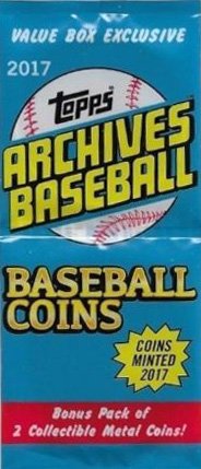 This is a BRAND NEW 2017 Topps Archives MLB Baseball Series Factory Sealed Unopened Blaster Box with 7 Packs of 8 Cards for a total of 56 cards per box PLUS a Bonus Pack of 2 Coins that are found EXCLUSIVELY in this product!