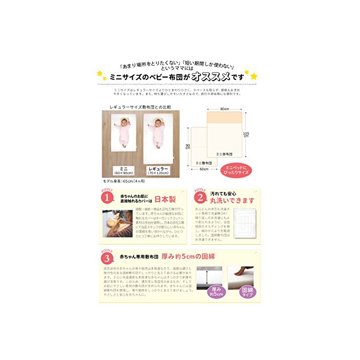 【사이즈】 내치수 60×90cm의 미니 사이즈 베이비 베드에 사용 가능