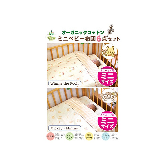 미니 이불 사이즈 【미키 미니】 ※내치수 60×90cm의 미니 사이즈 베이비 베드 대응 <피부에 직접 닿는 부분은 안심 안전의 일본제(세트 내용의 일부는 중국제)>