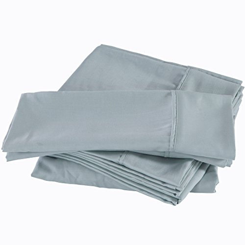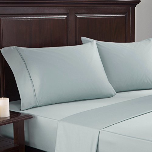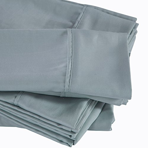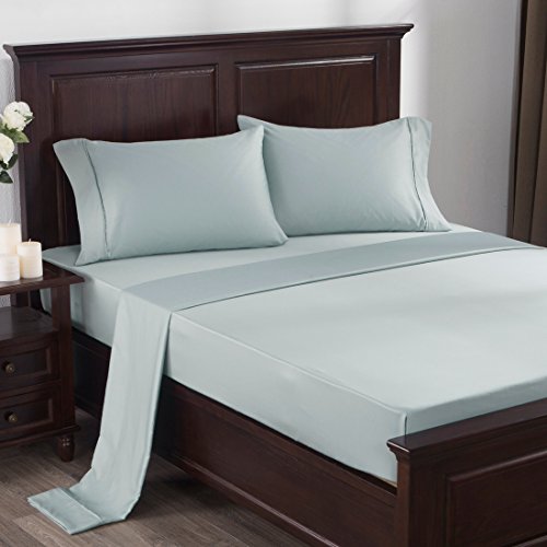Puredown 300 Thread Count 100% Cotton Satin Weave 4 Piece Bed Sheet Set, Deep Pocket, King Size, Light Blue