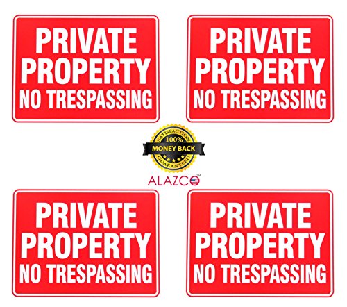 ALAZCO 8 Pack Private Property No Trespassing Sign 9 x 12 Inch - Bright Red Highly Visible Large White Letters - Land Yard Property Sign