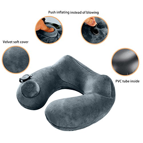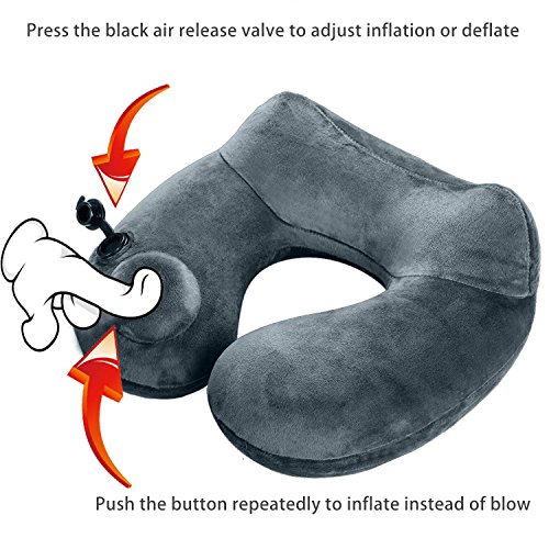 - ● INFLATING WITH A VALVE - The Travel Neck Pillow Comes with a High Quality Valve, Push to Inflate and One-touch to Deflate; Handy Valve to Release More Air When Overfilled It; You Don't Have to Blow It Up