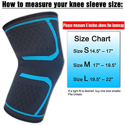 - DIFFERENT SIZES TO FIT ALL KNEES: The Knee Sleeve comes in three different sizes; Small, Medium and Large. Depending on the measurements of your upper leg, you can easily determine which one of the three sizes would fit you best. It will also determine how tight the Compression Knee Brace will be on your leg. So don’t waste time! Measure your upper leg and add the right size Knee Sleeve to your cart now!