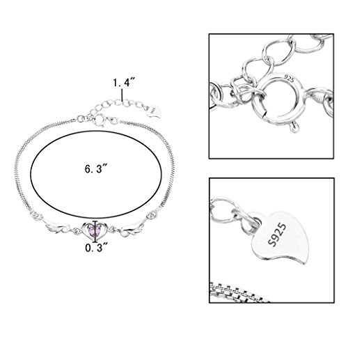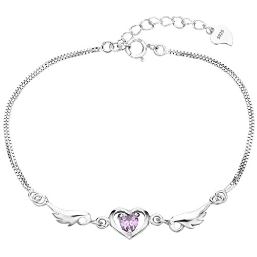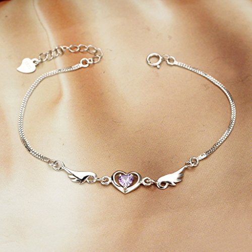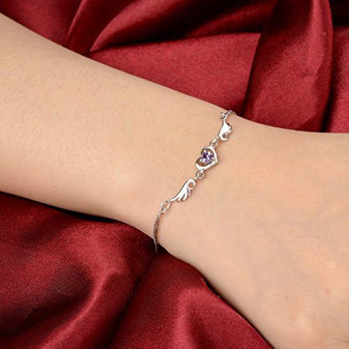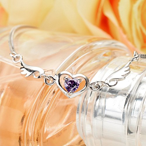 -. Title : EleQueen 925 Sterling Silver Amethyst Color Cubic Zirconia Love Heart Angel Wing Double Strand Bracelet