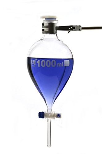 1000ml Separating Funnel ; Pear Shaped - Eisco Labs Premium Borosilicate Glass - Socket size 29/32