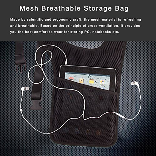 -. Feature : Durable nylon for anti-scratch and water resistance, breathable mesh material for comfortable wearing, sutiable for both cold and hot days. / The telescopic fastener is adjustable for different heights, a great companion for you in working, going home, travel and business trip. / Inside jacket with three pockets for superb convenience to store your items: iPhone, cellphone, tablet PC, keys, pen, passport, crash, MP3, etc. / A breathable mesh pocket on the back for a 7-10 inches PC, and a rope for easily hanging your earphones, sunglasses, interphone or mini LED flashlight. / This bag provides you with double protection, hands-free convenience and zero stress, for long-term comfort during traveling and on the way.