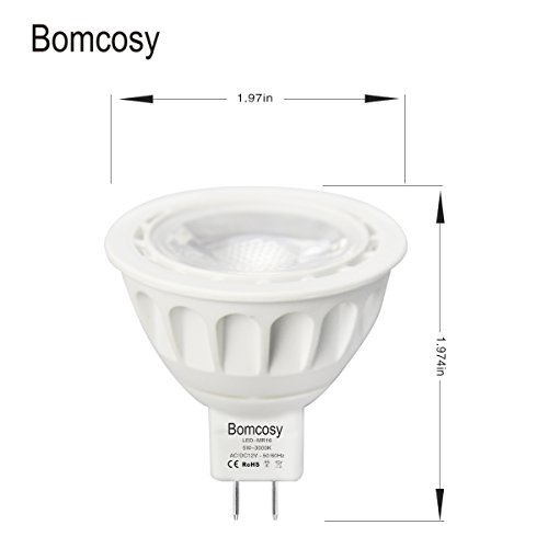 Bomcosy 5W MR16 GU5.3 LED Bulbs, 12V LED Light Bulb, 50W Halogen Spotlight Equivalent, Warm White 3000K LED Spot Light Bulbs, 425Lumens, 35 Degree Beam Angle, Non-Dimmable, Pack of 6 Units