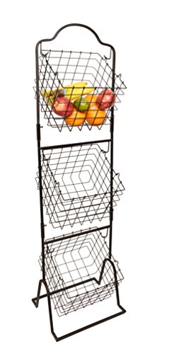 Stores and Displays - Three tiered basket does double duty, storing a large amount of fruits, vegies, or other items, while also making produce or products easy to see and select
