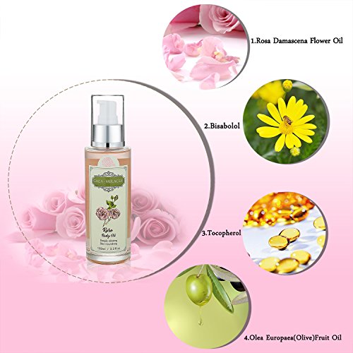 The best oil for treatment and massage: The oil is absorbable, not greasy and lasts 3 times longer than an average water-based lotion. Its natural rose scent enters your body through the olfactory nerves, comforting and delighting you, and easing anxiety, depression and stress. It also improves your sleep, metabolism, cell regeneration and blood circulation, bringing you a healthier, better and more beautiful life.