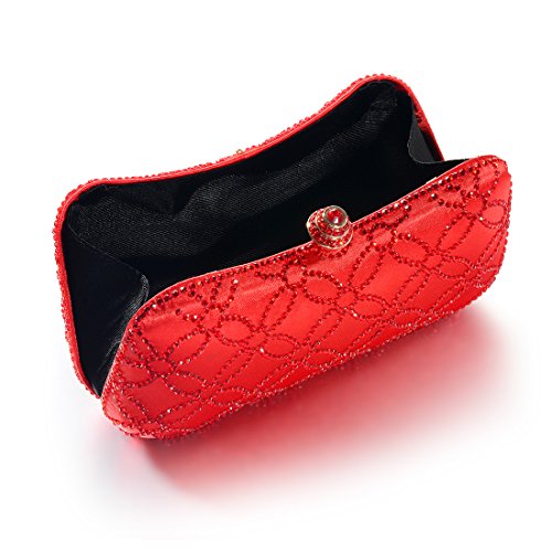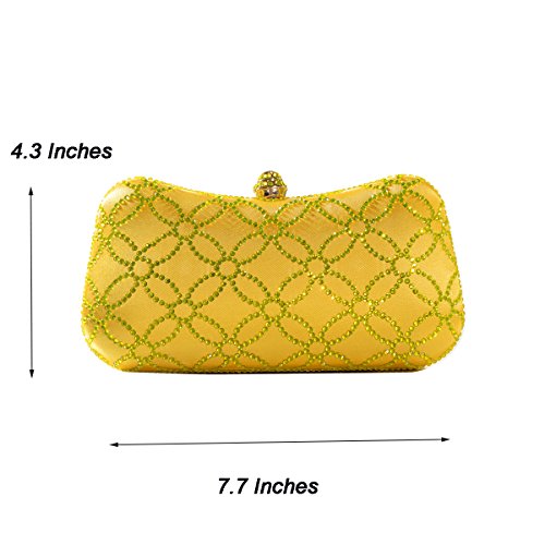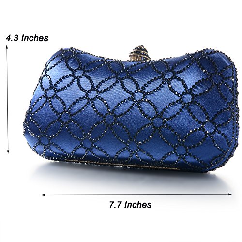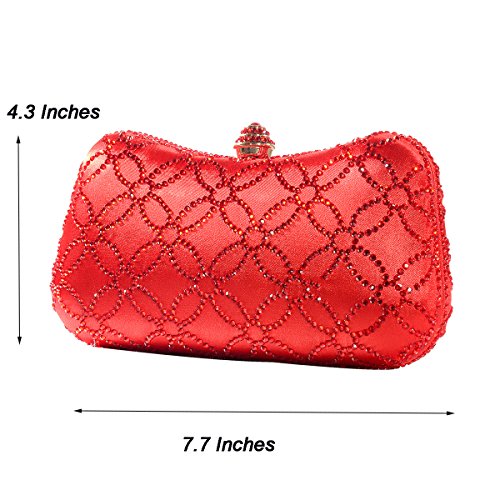 Specifications: *Product dimensions: 7.7(L) x 4.3 (H) x 1.8 (W) inches *Product weight: 1.1 pounds *Closure: Crystal clasp fastening *Shoulder strap: One detachable shoulder chain inside *Fashion element: Sparkel diamonds *Workmanship: Handmade *Materials: Fine A grade crystal diamond and metal hardware, fine fabric linning *Packaging: comes with a gift box *Ideal for holding essentials like keys, ID, lipstick and a cell phone. *Perfect for weekend, wedding, evening party, prom or a night out.