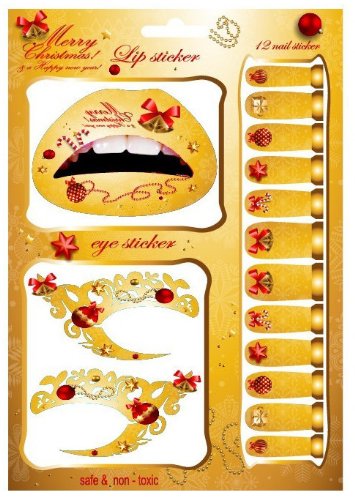 Fiercehorn Fancy Dress Ball Eyeshadow Lip Nail Sticker Temporary Tattoo Transfer Kit Set Yellow