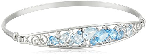 Sterling silver tonal Blue Topaz with White Topaz accents Bangle Bracelet
