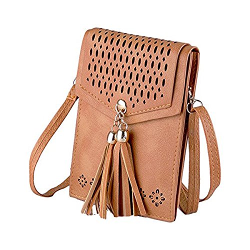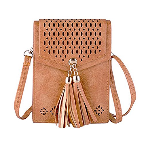 Women's Small Crossbody Bags Tassel Cell Phone Purse Wallet Mini Shoulder Bag PU Leather