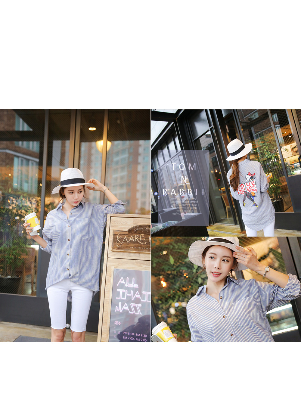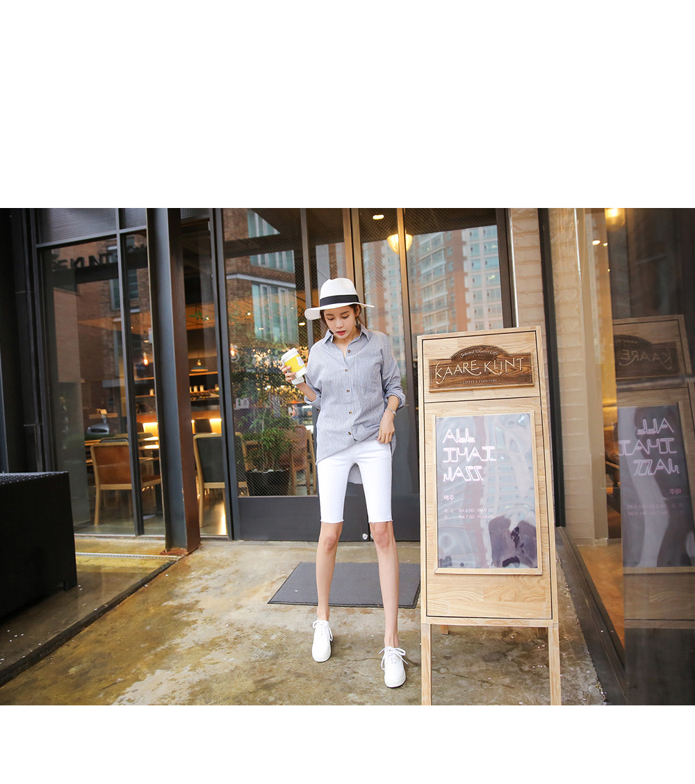 가볍고 얇은 코튼혼방 소재에 슬림하게 떨어지는 핏감이 가볍게