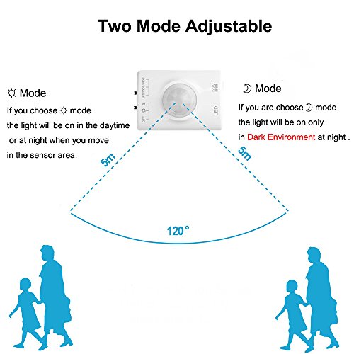 Dual Mode Optional - ☼ mode and ☽ mode. When you choose ☼mode,the light will be on in the day and at night;If you choose ☽mode,the light only be on in Dark Environment at night.