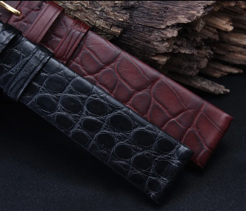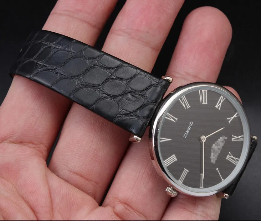 | [해외]시계 밴드 18 미리메터 20 미리메터 블랙 브라운 초슬림 진짜 악어 가죽 시계 스트랩 골드 배포 버클 시계 밴드 스트랩 |