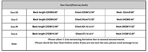 ▶Size:XS---Back length:22CM/8.66"----Chest:32CM/12.59"---Neck:?22cm/8.66" ▶Size:S-----Back length:25CM/9.84"----Chest:34cm/13.38"----Neck:24CM/9.44" ▶Size:M----Back length:33CM/12.99"---Chest:42CM/16.53"---Neck:28CM/11.02" ▶Size:L-----Back length:37CM/14.56"---Chest:47CM/18.5"----Neck:31CM/12.20" 0