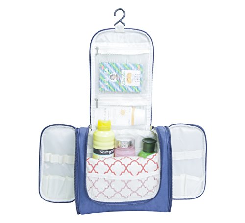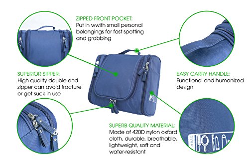 Hanging Toiletry Bag - WaterProof | Compact | Dark Blue - Perfect for Travel - Include 5 FREE Travel Bottles