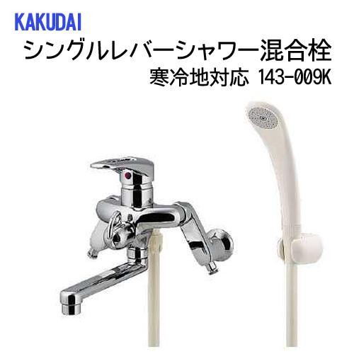 シングルレバーシャワー混合栓です。逆流防止機能が付いています!寒冷地対応です。 製造国:日本 素材・材質:青銅 仕様:逆流防止機能回転クランク仕様寒冷地対応 ※サプライヤー直送品 ご注文後2~3営業日後の出荷となります【商品名】カクダイ シングルレバーシャワー混合栓 寒冷地対応 143-009K
