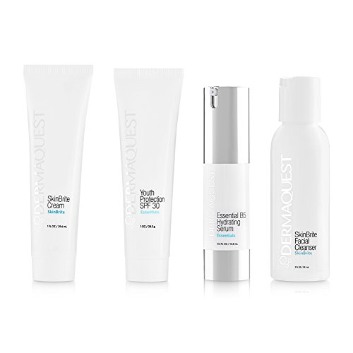 KIT INCLUDES: SkinBrite Facial Cleanser 2 fl. oz. • Essential B5 Hydrating Serum 0.5 fl. oz. • SkinBrite Cream 1 fl. oz. • Essential SheerZinc SPF 30 1 oz.