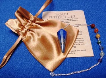 LAPIS FACETED CHAKRA PENDULUM WITH SATIN BAG AND INSTRUCTION LEAFLET FOR DIVINATION / DOWSING TOOL