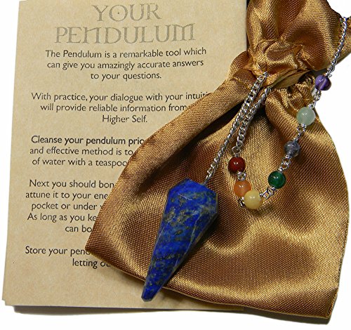 • Beautifully crafted 12-facet Lapis pendulum with chakra beads on a 6
