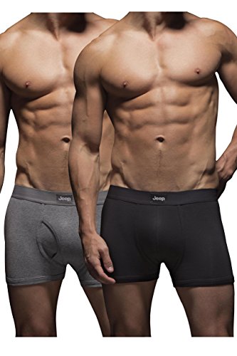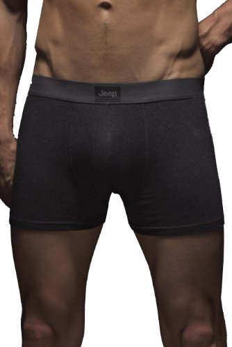 Binding : Apparel Product Description No fuss, no frills but all quality, Jeep Cotton Plain Fitted Hipster Trunk Boxer Shorts are trunks that fit low on the waist, made in stretch jersey for a great fit.Each pack contains two plain, single colour pairs in contrasting shades with shorter 4cm inseam legs. The trunks have a double layer front pouch with no fly and a saddle seat panel with flat comfort seams.The waist is fully elasticated and shows a Jeep patch at the front. If you prefer a trunk with a fly, choose Jeep Cotton Plain Fitted Key Hole Trunk Boxer Shorts or Jeep Cotton Plain Fitted Button Front Trunk Boxer Shorts.(12/12) 0