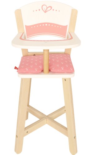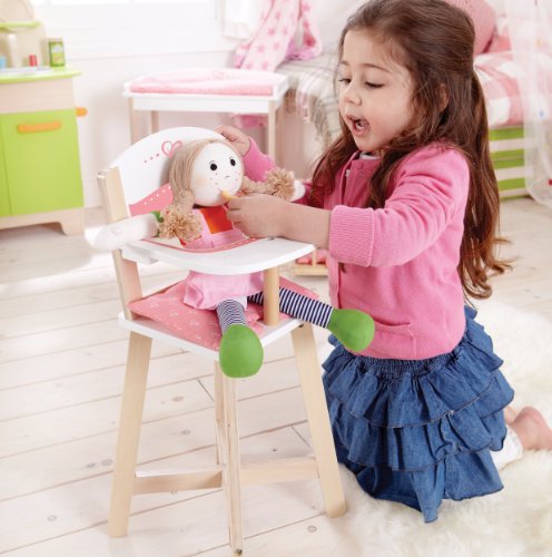 The perfect place for children to help their doll discover their favorite foods! Hape's Babydoll Highchair encourages dolls to sit up straight and chew their food well before swallowing. This stylish chair features a classical design, whimsical patterns, and a soft pink coloring, combining visual appeal to playful practicality. Encourages children to create stories as they play pretend with their dolls, developing imaginative thinking and storytelling skills. Durable child safe paint finish and solid wood construction make this a toy your child will love for years to come. Hape toys stimulate children through every stage of development and help nurture and develop their natural abilities. All Hape products sold in North America meet or exceed all applicable safety standards. The Babydoll Highchair is a proud recipient of the 2013 Oppenheim Toy Portfolio Platinum Award.Feature