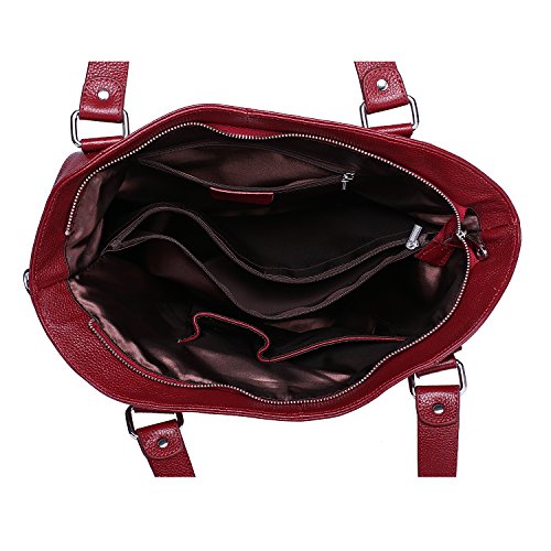 Features: Handmade. With 2 big inner compartment, 1 interlayer zipper bag, 1 interior zipper slot pocket, 2 open pockets for smartphone, credential and keys/lipsticks, 1 behind zippered pocket. Delicate zip closure is designed for the safety of your properties. The bottom of bag has four textured metal rivets which is effective for protection against wear.