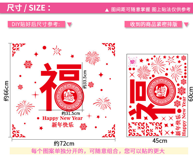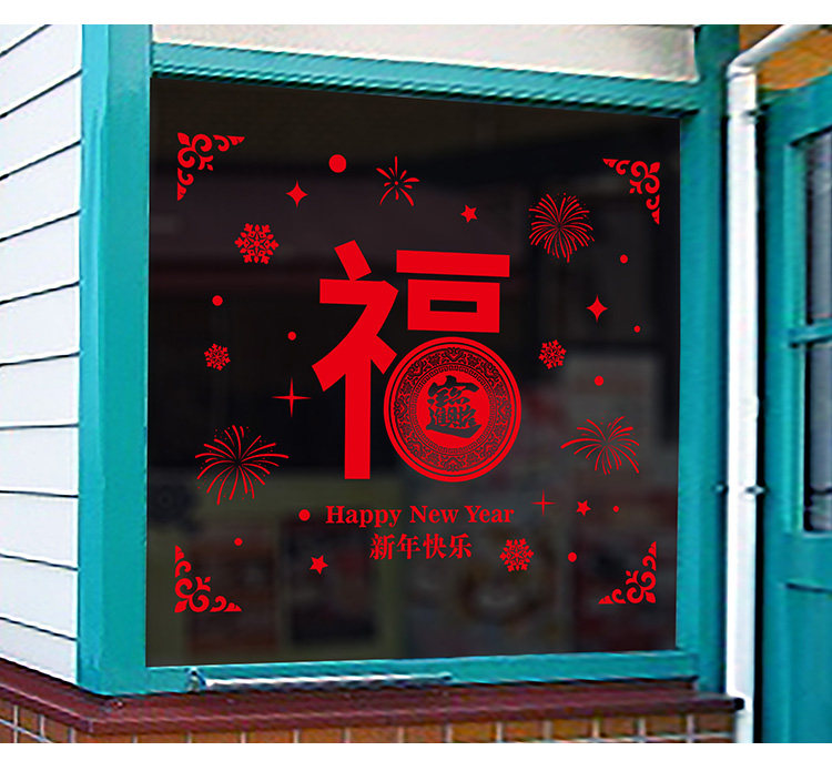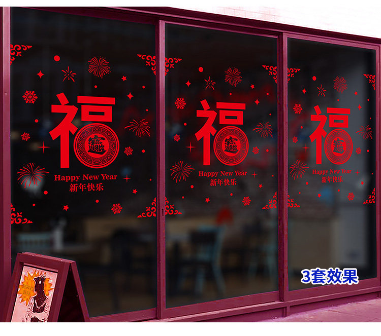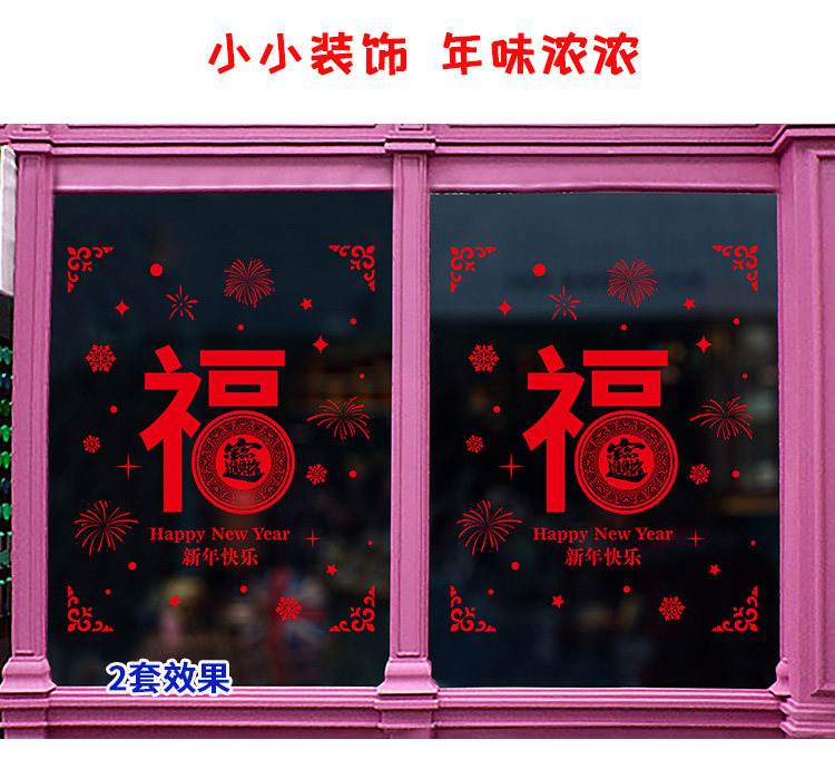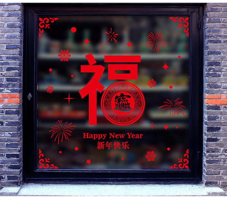 橱窗新年氛围装饰品新春节玻璃窗户贴纸年画墙贴画过年窗花福字贴