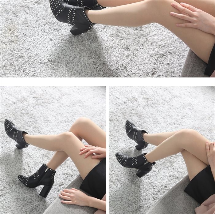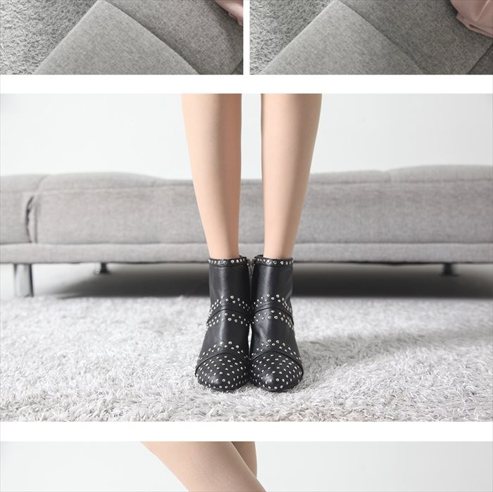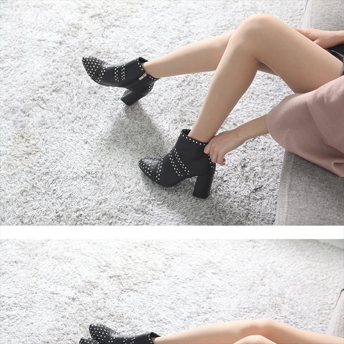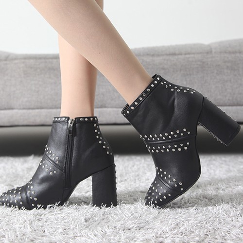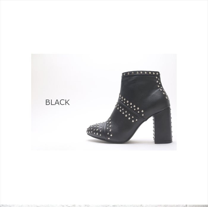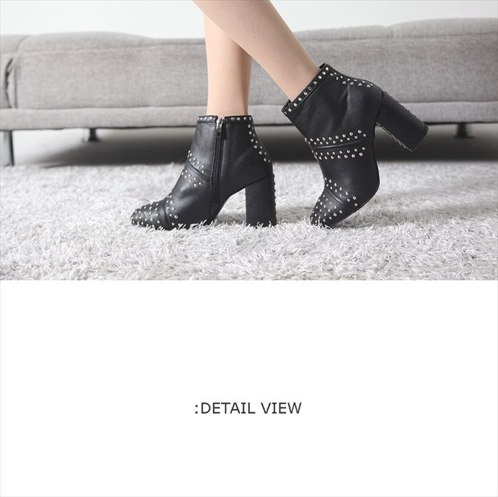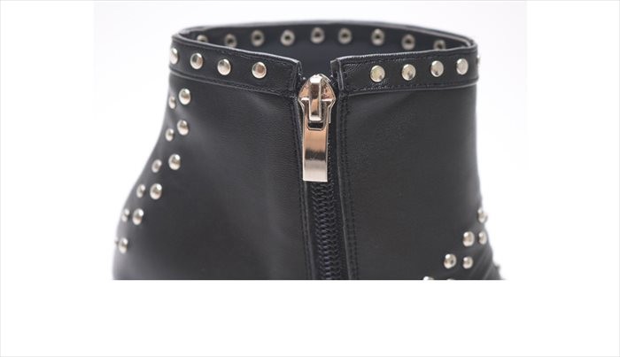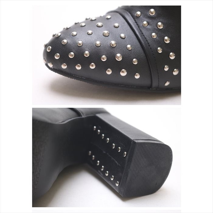 商品名:ブーツ レディース チャンキーヒール スタッズ サイドジッパー 太ヒール 2017 秋冬 ファッション 靴 婦人靴