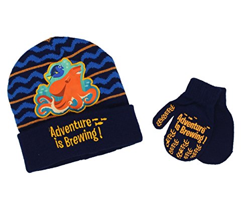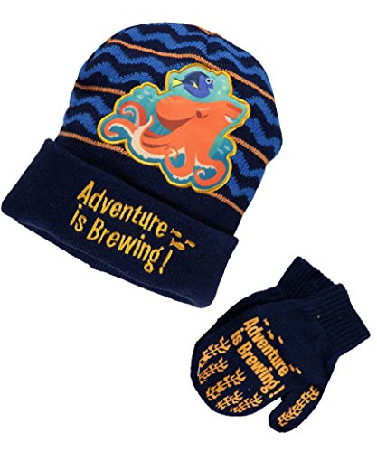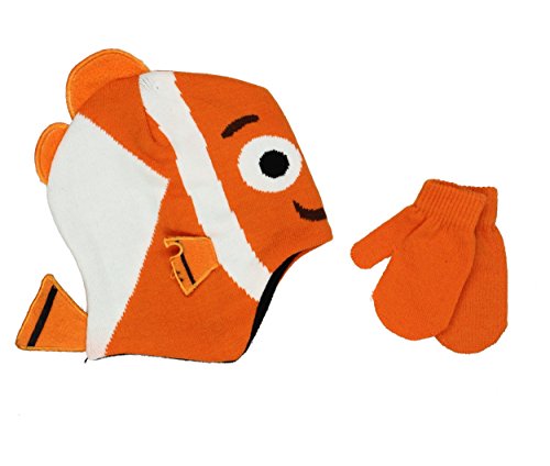 Binding : Apparel Product Description Keep warm and bundle up with your favorite Finding Dory characters in this adorable toddler hat and mitten set! The hat is fully knit and includes images of Disney's Finding Dory characters: Dory, Nemo, and Hank! The Nemo Orange and Dory Blue hat set includes 3D fins! It's the perfect choice for any fan of the Disney Pixar's Finding Dory or Finding Nemo! Choose one or collect them all! 0