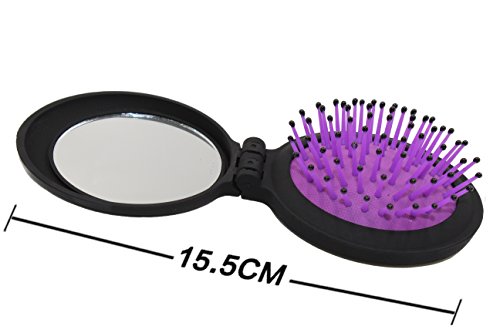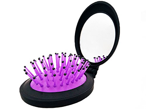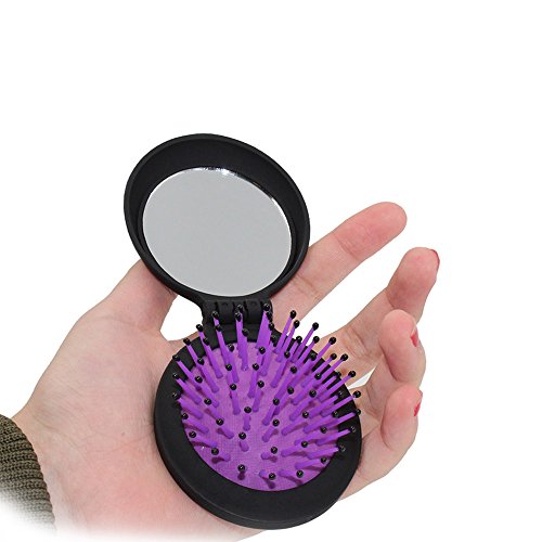 Soft Hair Brush - Folding Travel Hair Bush and Comb With Mirrro, Mini Pocket Hair Brush Hair Comb For Women Gift Idea (Purple)