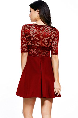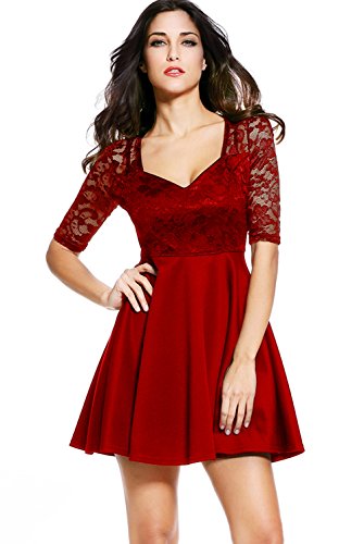 This Black Lace Bodice Skater Dress is sure to turn some heads by the body-flattering shape which only stands out your advantages while cover those you unwanted to show in public. Partial lined. The lace overlay bodice and sleeves add you femininities, low cut mild neckline and fluttering skirt the lower part.