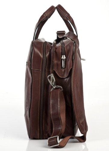 -. Feature : Made from Full Grain Italian Cow Hide Leather. Vegetable tanned for greater durability, texture and feel. Leather is soft to the touch with a matted grain finish. / Front interior compartment is 36" zip around and features laptop sleeve that holds up to 17" Laptops. Back interior compartment features a divider, mesh zippered compartment, three(3) organizational pouches, and a large interior zippered compartment. / Front exterior expandable zippered pocket with three(3) credit and business card holders, three(3) pen holders, and two(2) stationary pockets. Features top exterior open pocket for easy access. Double top carry handles. Rear large zippered compartment for documents, magazines or small books. / Comes with 1" thick detachable and adjustable padded shoulder strap. Comes in signature Tony Perotti lint bag for storage. Interior pigskin lining. / Dimensions: Exterior 16.25"(L) x 11.5"(H) x 5.5"(W) Interior: 16"(L) x 11"(H) x 2.5"(W)- each compartment. Weight: 5.5 Lbs. Available Colors: Black, Brown. Comes with Limited Lifetime Warranty