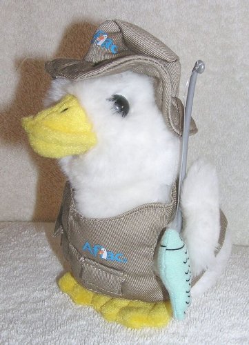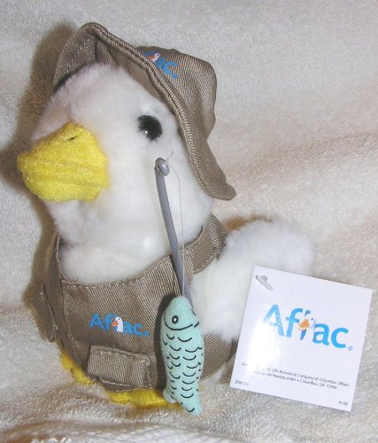-. Binding : Toy -. Brand : Aflac -. EAN : 0732468442831 -. Feature : Plush Talking Fisherman Aflac Duck / wearing fishing vest and hat and holding a fishing pole with fish on it / Press body and he says "Aflac Aflac Aflaccc" / approx. 6" high and 4" long -. Label : Aflac -. Manufacturer : Aflac -. ProductGroup : Toy -. ProductTypeName : TOYS_AND_GAMES -. Publisher : Aflac -. Studio : Aflac -. Title : Talking 6" Plush Fisherman Aflac Duck With Fishing Pole -. UPC : 732468442831