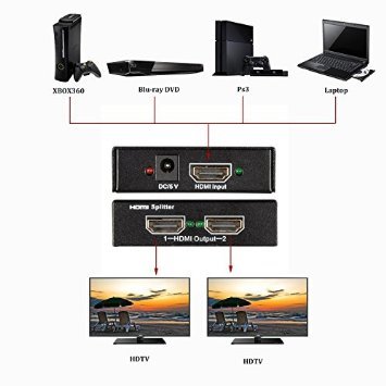 Udigital 1 In 2 Out 1x2 HDMI Splitter Amplifier for Dual Display with Full HD 1080P & 3D Support PS3 Xbox DVD Blu-ray