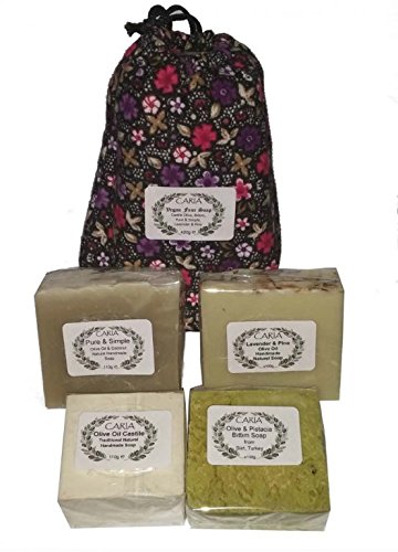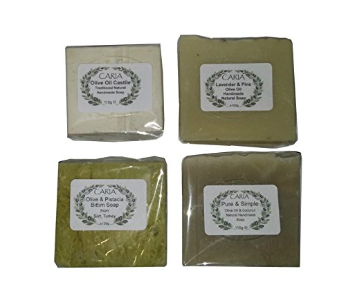 CARIA Vegan Four Bar Soaps - Multibuy Olive Oil Soap Gift Set All Natural Handmade Turkey (400g)