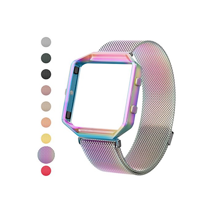 Fitbit Blaze 밴드+프레임,Wearlizer Fitbit blaze 밀라노 스틸 스트랩 프레임 손목시계 벨트 공구 불요전4색