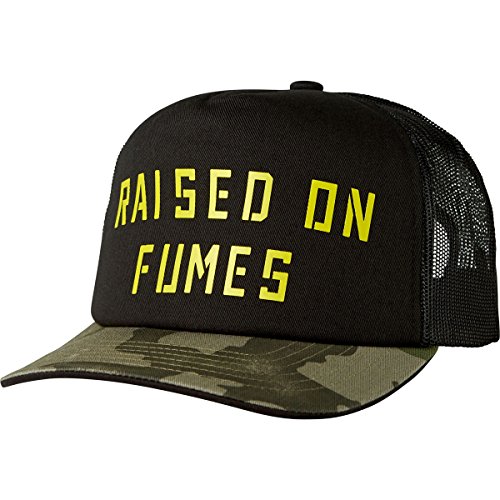 Studio : Fox Young Men's Publisher : Fox Young Men's Binding : Apparel Product Description Foam front, mesh back trucker, hi-density ink screen print on front, Fox head embroidery on back, snap closure with Fox flag label, medium profile, natural curve bill. 0