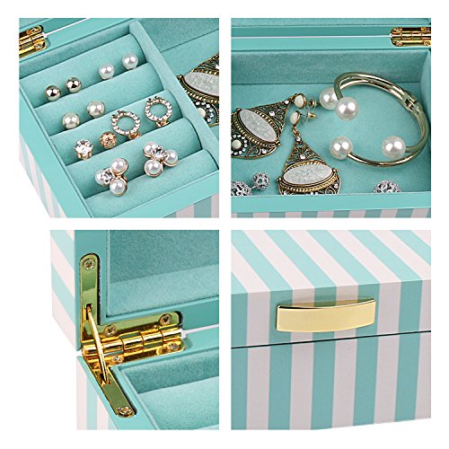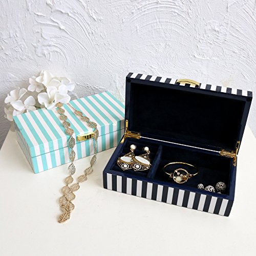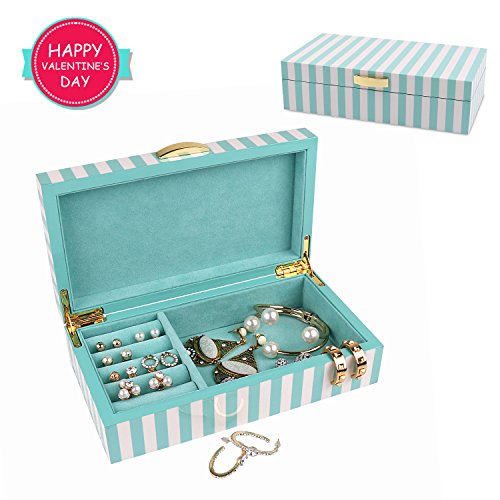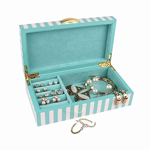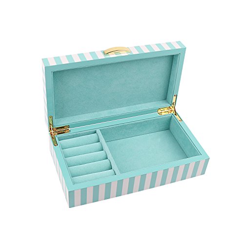 - UNIQUE & FASHION DESIGN: Chic white and aqua green striped, Lacquer wooden Jewelry Box with soft aqua green velvet, this jewelry box is super excellent to protect your beloved jewelry from scratch and damage. Great for personal use, shop display and home decoration.