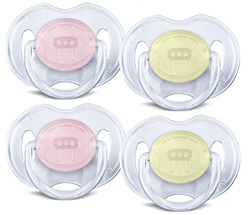 -. Feature : Orthodontic symmetrical collapsible nipple so right side up or upside down, philips avent pacifiers help ensure natural development of teeth and gums / Taste and odor-free silicone nipple makes for an easy transition between pacifier, breast and bottle / Includes four pacifiers, ideal age range: 0-6 months / WARNING: Do not tie pacifier around child's neck as it presents a strangulation danger