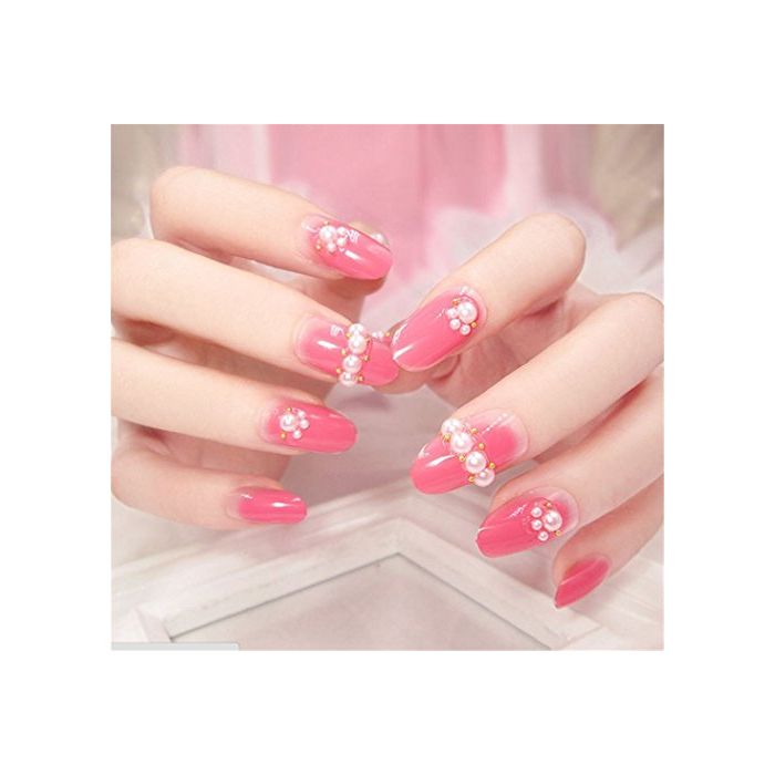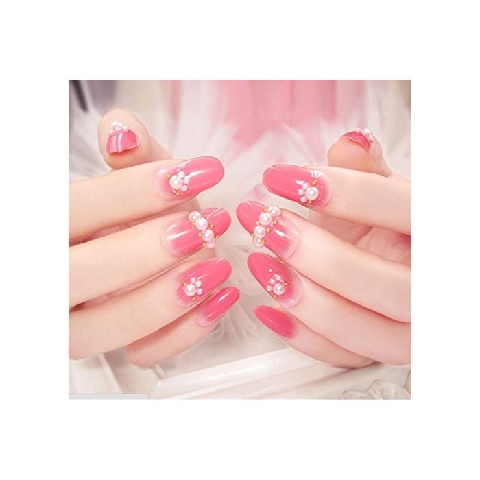 Biutee 네일 팁(칩) 수작업 네일 팁(칩) 네일 쥬얼리 붙여 손톱 24매입 풀 팁(칩) 심플 양면 접착 테이프 부착 결혼식,파티,2차 모임 등에 네일 아트 (D7)