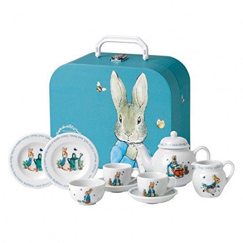 Studio : Wedgewood Publisher : Wedgewood Product Description Wedgwood has a long association with Peter Rabbit and Beatrix Potter. The relationship dates back to 1949 when Wedgwood first decorated ceramic items with the iconic Peter Rabbit illustrations, and Wedgwood has been producing Peter Rabbit Nurseryware ever since. Providing endless opportunities for playtime fun, the Children's tea set includes miniature Teapot, Sugar and Creamer as well as Cups, Saucers and Plates for two. When the entertaining has ended, this beautifully designed collection can be housed in its bespoke blue suitcase - a stand out gift to be treasured. 0