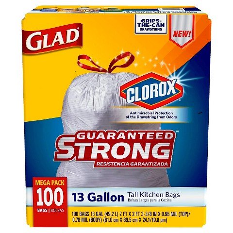 -. Title : Glad Tall Kitchen Antimicrobial Drawstring Trash Bags 13 Gallon 100Ct