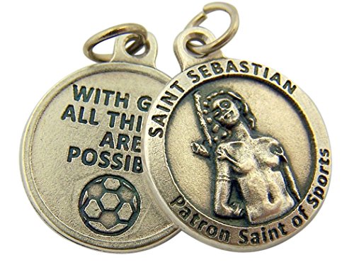 -. Title : Silver Toned Base With God All Things Are Possible Saint Sebastian Sports Medal, 3/4 Inch