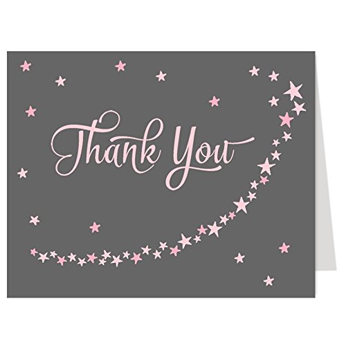 Product Description Thank guests for attending your baby shower or child's birthday party with this sweet gray card adorned with pink stars. 0