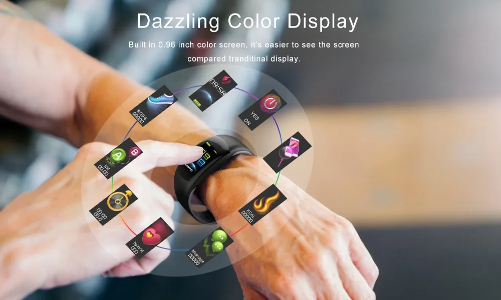 Function:Week,Message Reminder,Passometer,Activity Tracker,Alarm Clock,Fitness Tracker,Call Reminder,Remote Control,Sleep Tracker,Heart Rate Tracker,Social Media Notifications,Push Message